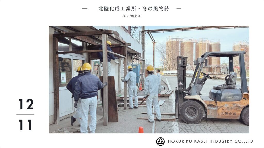 この冬支度の風景こそ、北陸化成工業所の冬の風物詩になっています♪