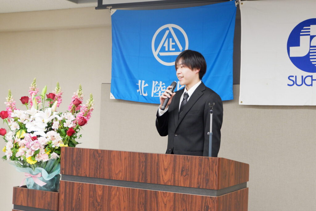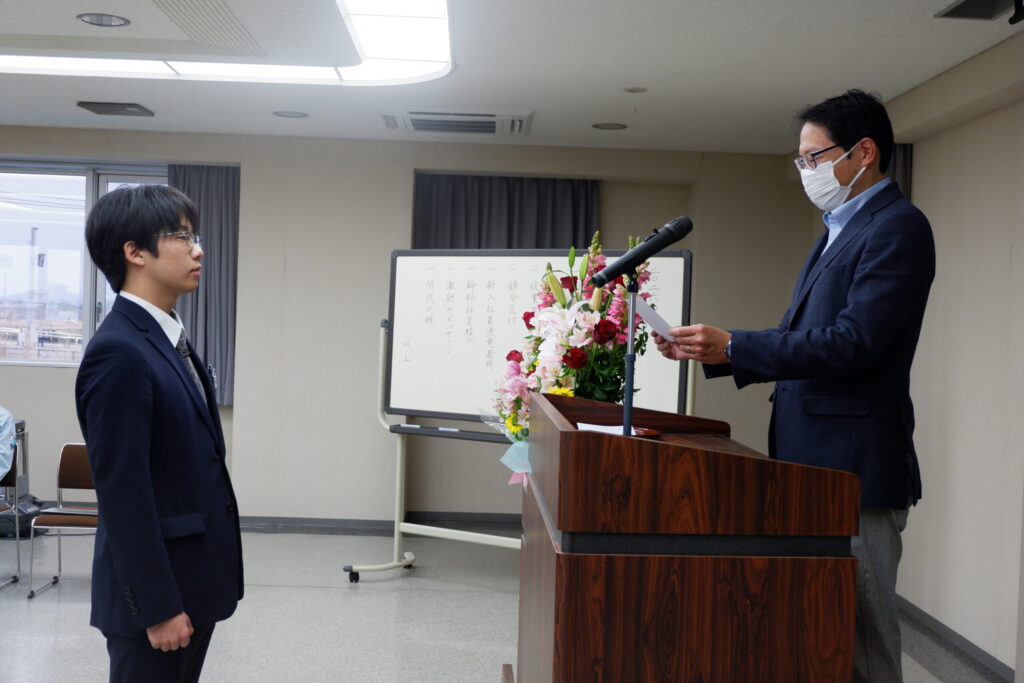 新入社員の2名も「資格取得を頑張りたい」「社会貢献できるようになりたい」とそれぞれしっかりと決意表明していました。